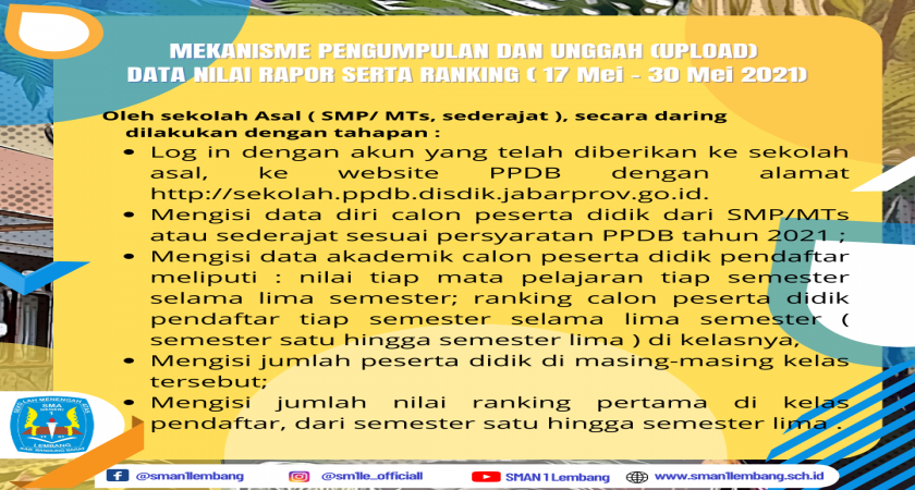 Tetap ikuti info ppdb 2021 di halaman resmi SMAN 1 lembang, baik IG, Facebook & Website.